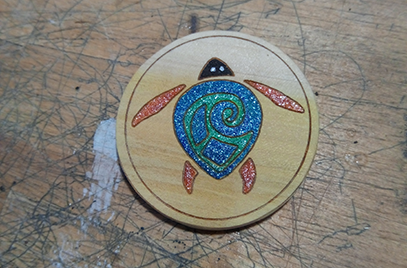 We added a splash of colour using gel pens. The finish is "chld safe" varnish.